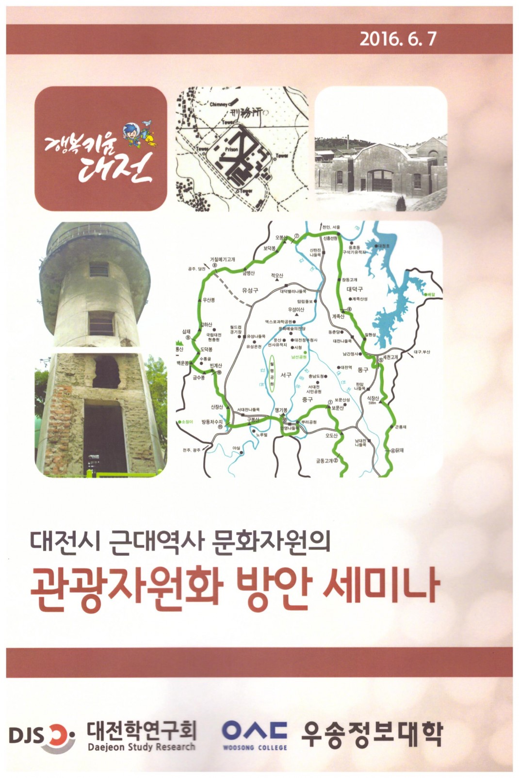 관광자원화 방안 세미나 개최 페이지 정보 작성자 관리자 댓글 0건 조회 3,495회 작성일 16-06-14 12:58 본문 2016년 6월 7일 대전학연구회와 우송정보대학은 대전시 근대역사 문화자원의 관광자원화 방안에 대하여 세미나를 개최하였습니다. 충남대 명예교수 및 대전학 연구회 고문으로 계시는 송백헌 교수님과 대전광역시 도시재생본부 이희준 박사님께서 발제를 하시어 옛 대전형무소 자리의 가치와 관광자원화 방안에 대한 열띤 토론을 해주셨습니다. 목록 답변 이전글경제활력포럼 개최-대전 특화거리 상권 활성화 방안 16.06.14 다음글대전학연구회 부설 대전학연구소 개소 16.04.09 댓글목록 댓글목록 등록된 댓글이 없습니다.